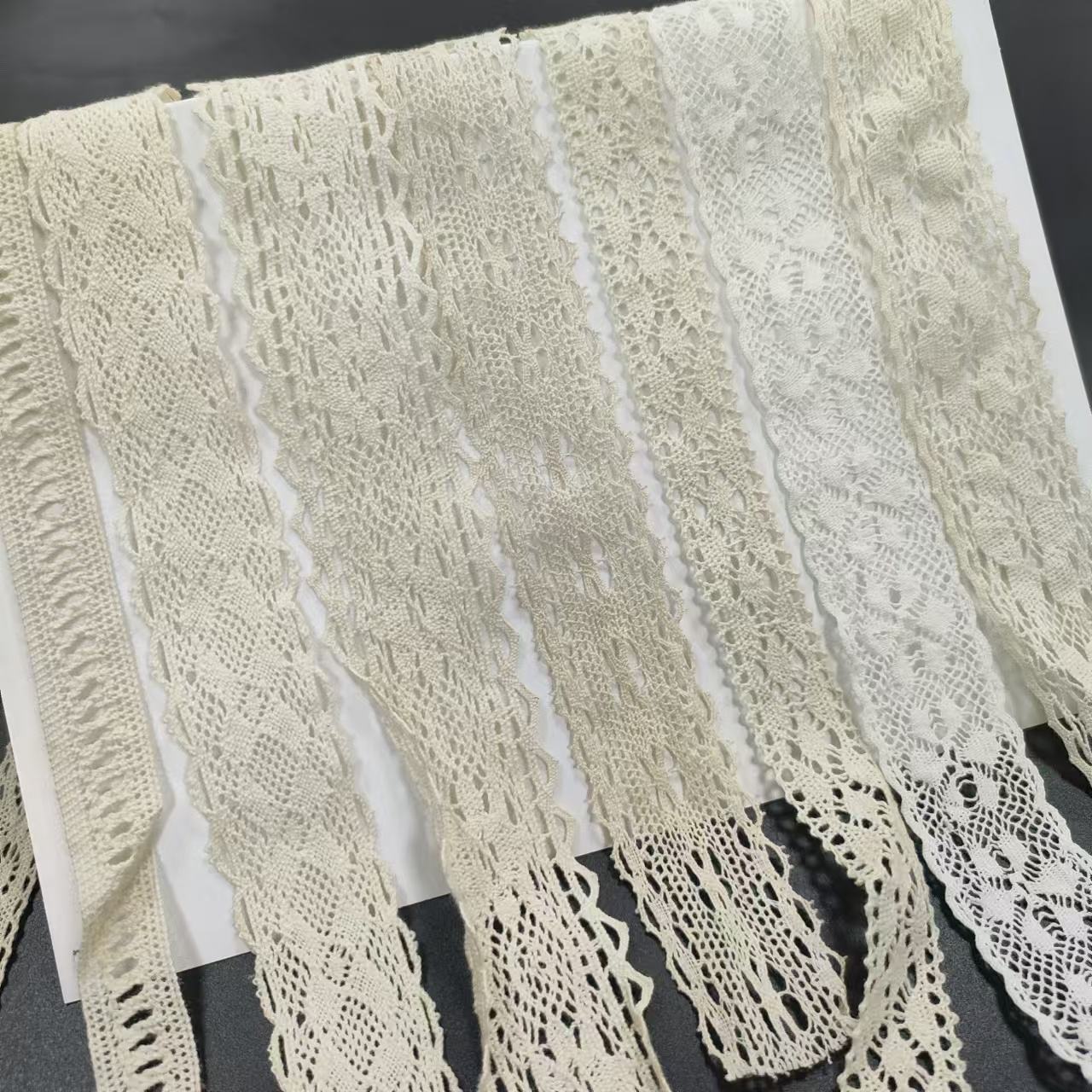 Лацес памучне везе су најновиједесгинс одвисококвалитетни чипка. Они су направљен од памука, Може се користити у одећи, кесама и производима за кућне текстиле.